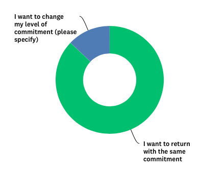 In addition, 87% of you would like to return at a similar level of commitment/frequency, with a small number feeling that other commitments would mean they could come less-often.