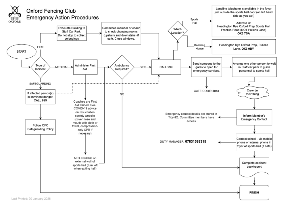 - Ensure that a committee member is able to communicate the nature of the emergency and any other salient information to emergency services on their arrival.